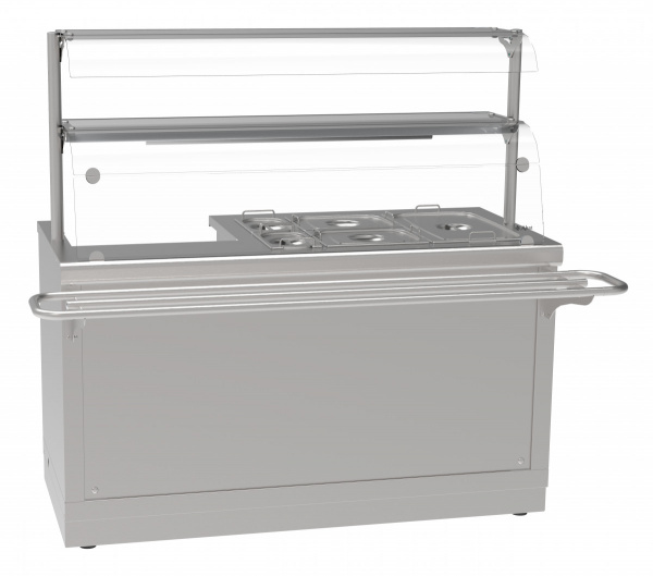 Электрический мармит кухонный универсальный ЭМКУ-70Х-01 линии раздачи HOT-LINE предназначен для кратковременного сохранения в горячем состоянии первых и вторых блюд в наплитной посуде и гастроемкостях и раздачи их потребителям.