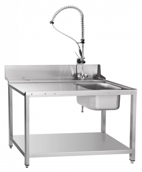 Стол предмоечный СПМП-7-4 (1304х725 мм) душ-стойка, мойка цельнотянутая 400х400х250, для туннельных машин МПТ