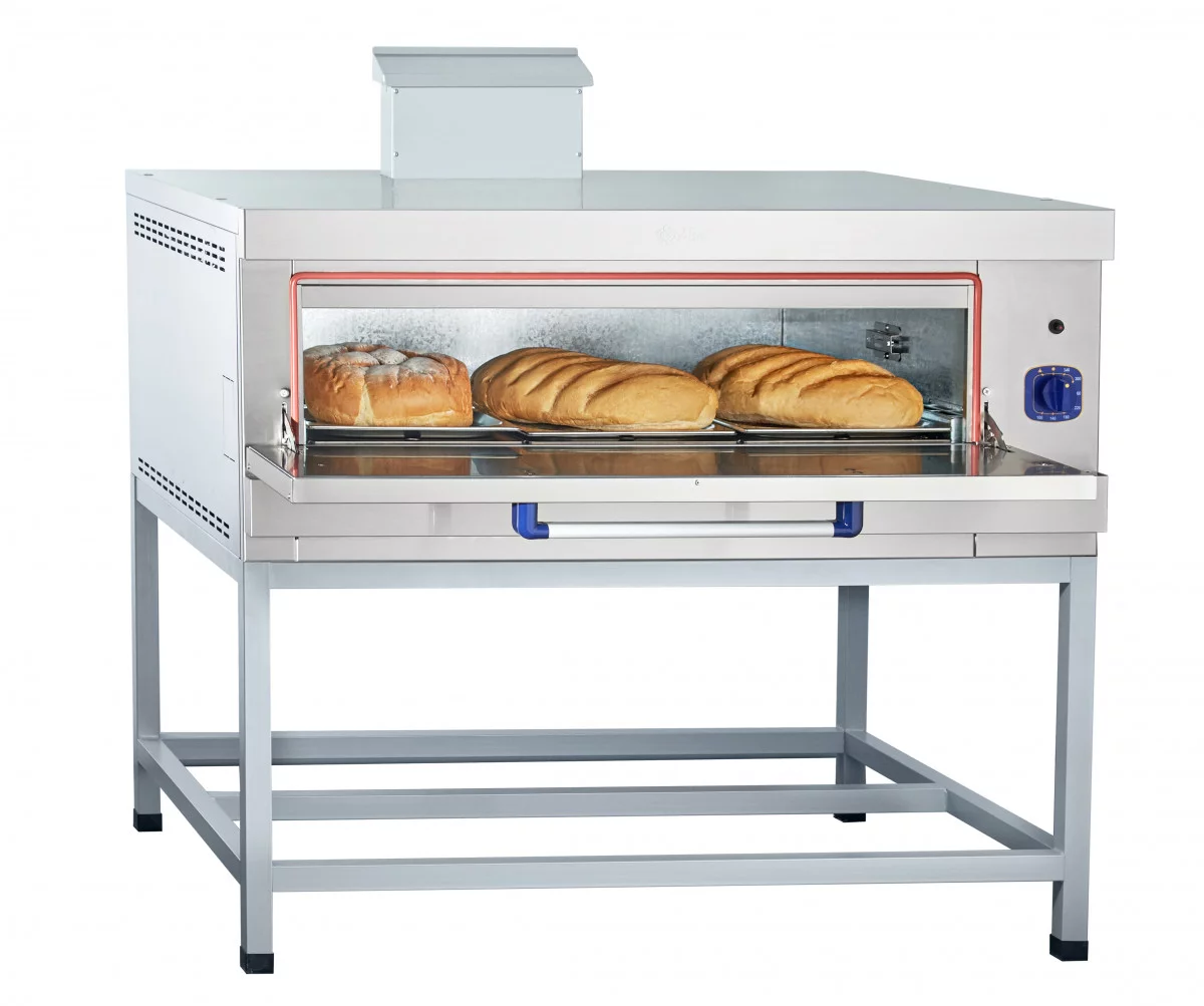 Шкаф пекарский подовый ГШ-1 газовый, 1 пекарная камера 1035х770х250 мм, +100...+340 С, пьезорозжиг, газ-контроль, нерж. облицовка, нерж. дверца, краш. боковые и задняя стенки, поды - углеродистая сталь, 1300х970(1057)х(1009)1211 мм, 8 кВт, 1 горелка, краш. подставка