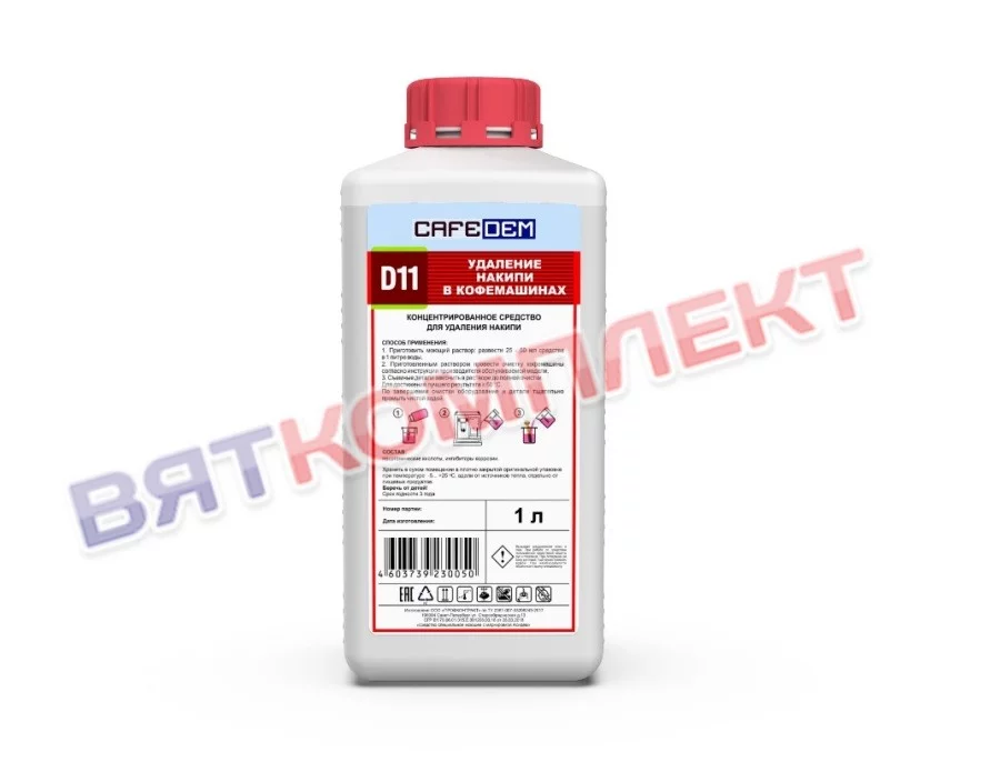 Концентрированное жидкое кислотное моющее средство CAFEDEM D11 предназначено для очистки оборудования от кальциевых отложений (накипи) из нагревательных элементов (в разных моделях аппаратов они могут быть представлены термоблоками, ТЭН, бойлерами) кофемашин. Средство не вызывает коррозии, быстро и полностью удаляет известковый налет и накипь с металлических частей оборудования.