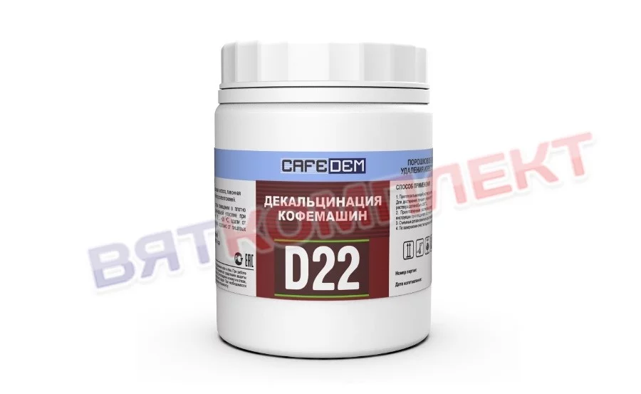 Порошковое кислотное моющее средство CAFEDEM D22 применяется для регулярной внутренней декальцинации (очистки оборудования от кальциевых отложений (накипи) из нагревательных элементов (в разных моделях аппаратов они могут быть представлены термоблоками, тэнами и бойлерами)) кофемашин. Средство не вызывает коррозии, быстро и полностью удаляет известковый налет и накипь с металлических частей оборудования.