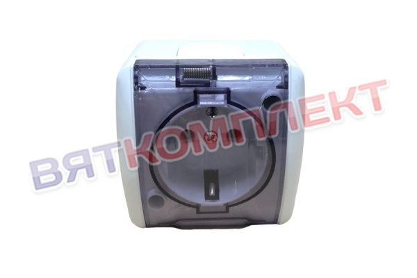 Розетка 1ОП с крышкой, IP44, 16А, 220В, белый (Клио К2229) (с прозрачной крышкой RKBJ) Абат