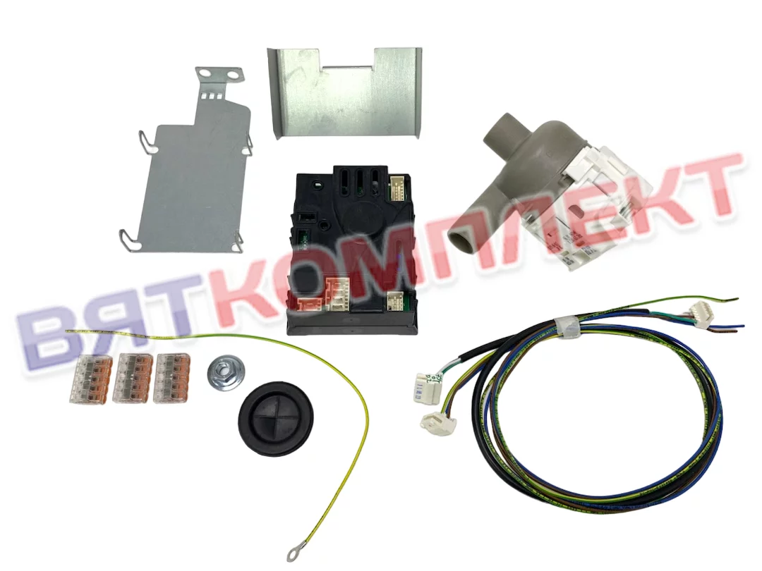 В комплект входят: насос для очистки, плата управления с корпусом, кабель, проставка циркуляционного насоса, держатель электроники циркуляционного насоса и другие компоненты.