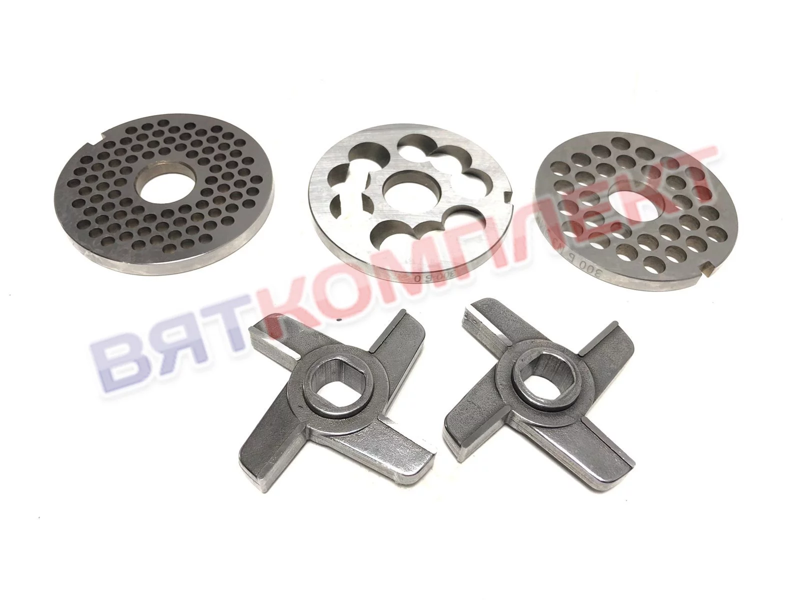 Комплект ножей и решеток (набор) для мясорубки МИМ-300/764, МИМ-350, МИМ-300М (хром) с буртом Торгмаш г.Барановичи.