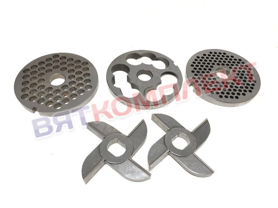 Набор (комплект) решеток и ножей для мясорубки МИМ-600(М),М-600 НЕРЖАВЕЮЩАЯ СТАЛЬ (без бурта)