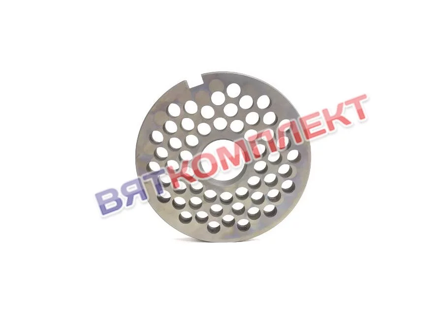Решётка D114 под бурт (29) с диаметром отверстий 9 мм (фрезерованная) является частью режущего комплекта волчка-мясорубки, в зависимости от расположения называется промежуточной или выходной