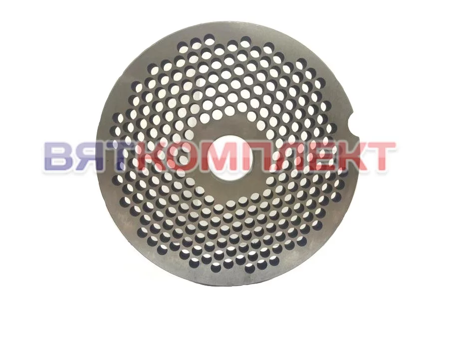 Решётка D200 с диаметром отверстий 8 мм (фрезерованная) является частью режущего комплекта волчка-мясорубки, в зависимости от расположения называется промежуточной или выходной.