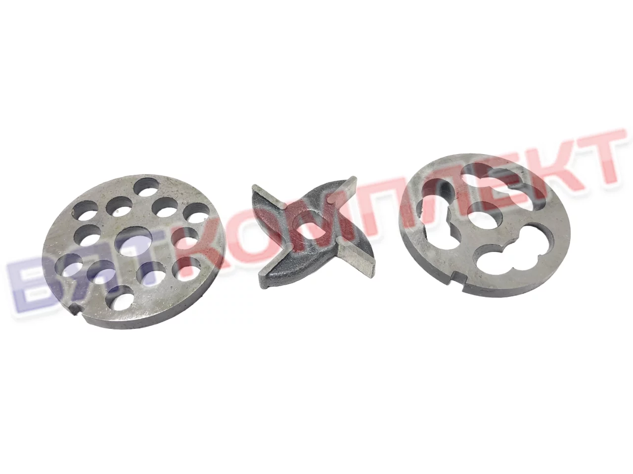 Комплект (набор) ножей и решеток МИМ-80 (без бурта) подходит для мясорубок МИМ-80(-01), производства ТОРГМАШ г. Барановичи и М-50С, ММП и М-80 ТОРГМАШ г. Пермь
